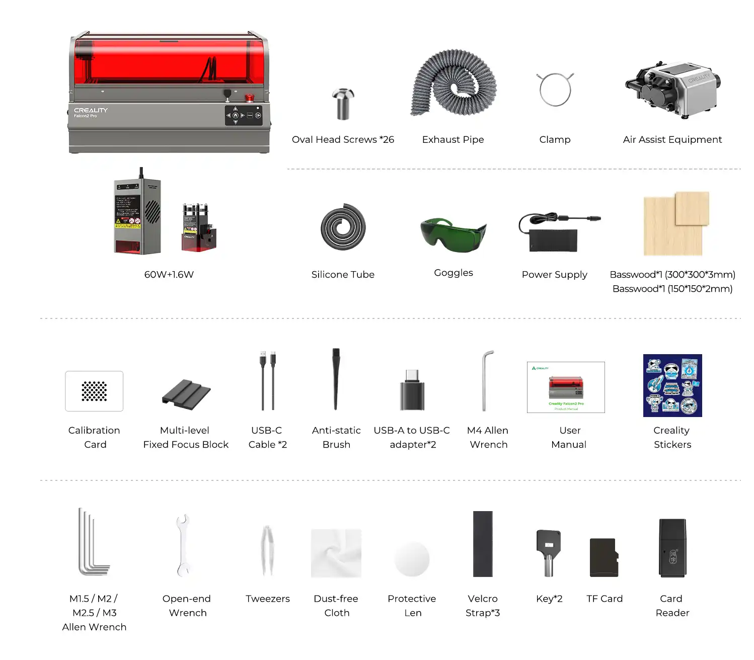 Il Creality Laser Falcon 2 Pro Engraver è uno strumento potente e versatile che combina tecnologia laser all’avanguardia con capacità di incisione di precisione, rendendolo una scelta ideale per maker, hobbisti e professionisti. Con un modulo laser da 60W, questa macchina offre prestazioni di incisione e taglio ad alta velocità, permettendo di creare progetti dettagliati su una vasta gamma di materiali con facilità.