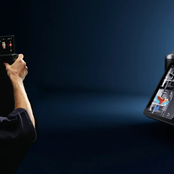 Schermo touch AMOLED 2K da 6” ribaltabile a 180° per visualizzazione chiara.